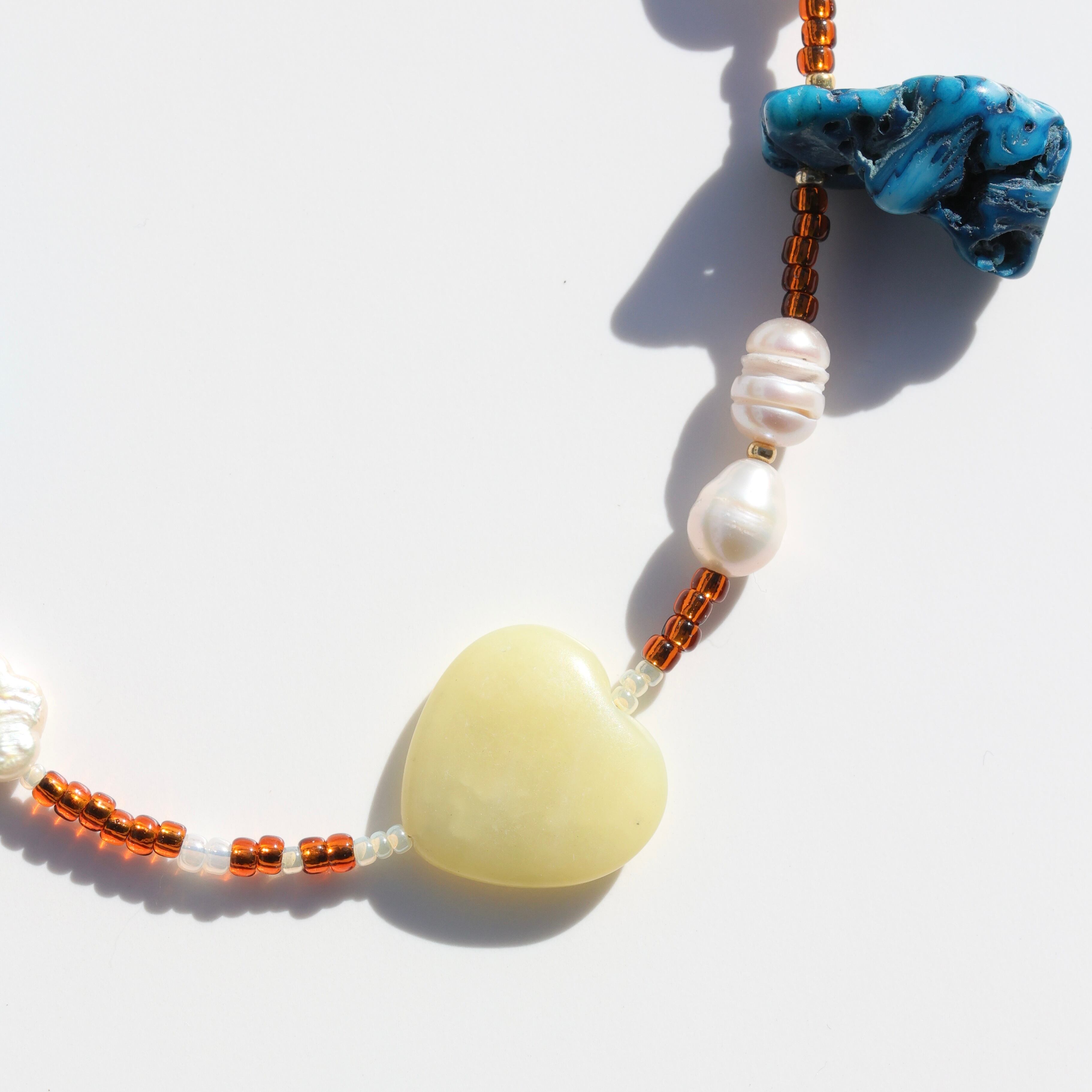 珊瑚とハートパーツの組み合わせが